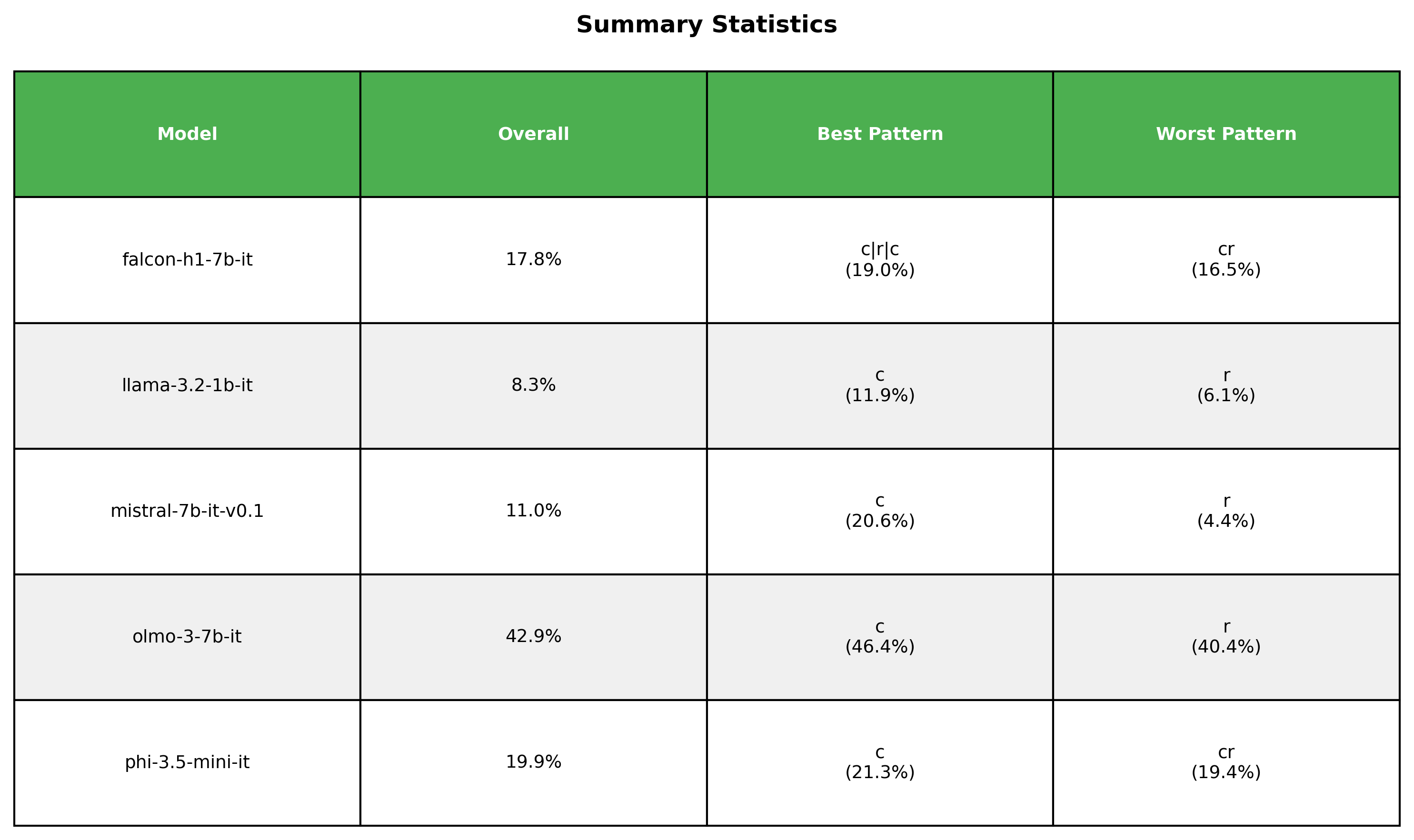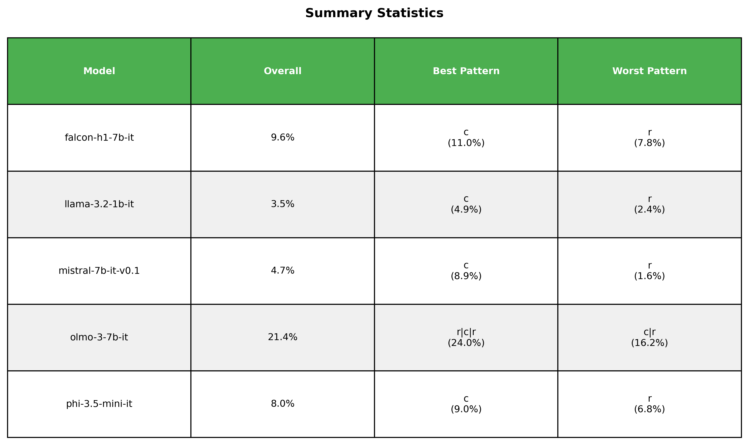 I also included a smaller model (Llama-3.2-1B) to explore whether distinct behaviors emerge at lower parameter counts. While this added an interesting data point, I chose not to expand this into a full model-size analysis, as it would have introduced another dimension requiring significant additional compute and analysis time beyond my current resources.
