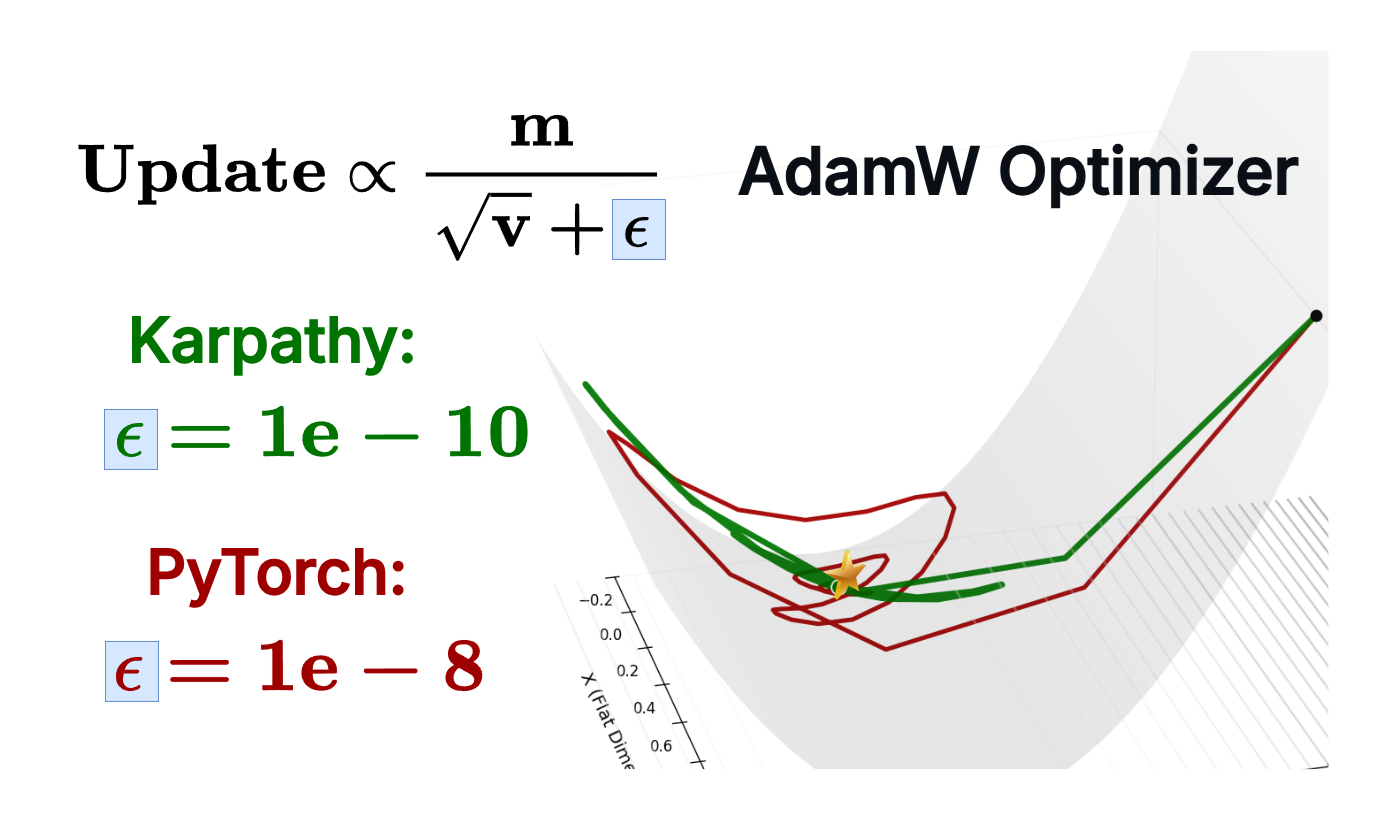 We usually treat epsilon as a boring “numerical stability” hack : a tiny number added to avoid division by zero. We set it and forget it. But why would Karpathy change it by two orders of magnitude?