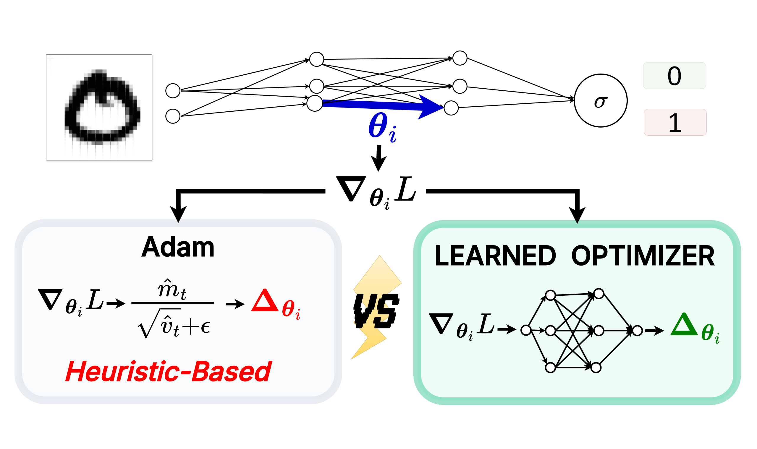 But just as Computer Vision moved from hand-crafted structural biases to learning them directly from data (like CNNs learning spatial hierarchies or Vision Transformers learning patch interactions), shouldn’t we do the same for optimization? If human researchers can design Adam by making assumptions about deep learning landscapes, a neural network should be able to integrate (or better yet, learn) the perfect, highly-specialized inductive biases just by observing the distribution of gradients directly.