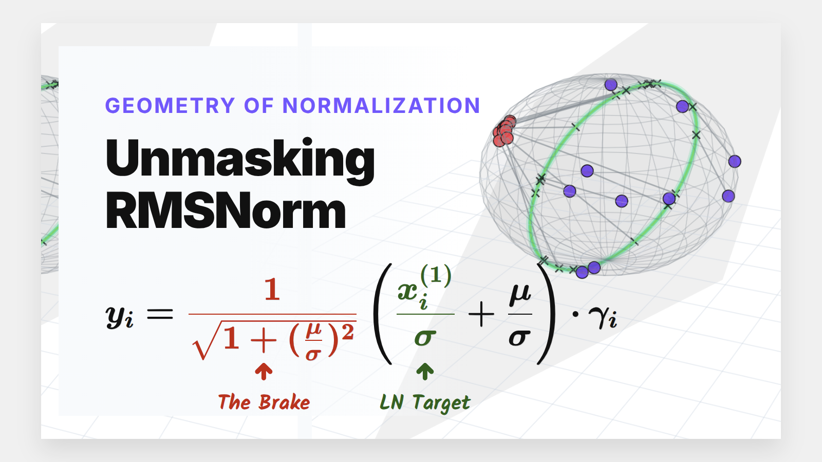 When we talk about operations inside a Transformer, we usually look at raw algebra. But if we strip away the indices and summations, normalization is actually a beautiful sequence of spatial transformations: projections, spheres, and stretching hyper-ellipsoids.